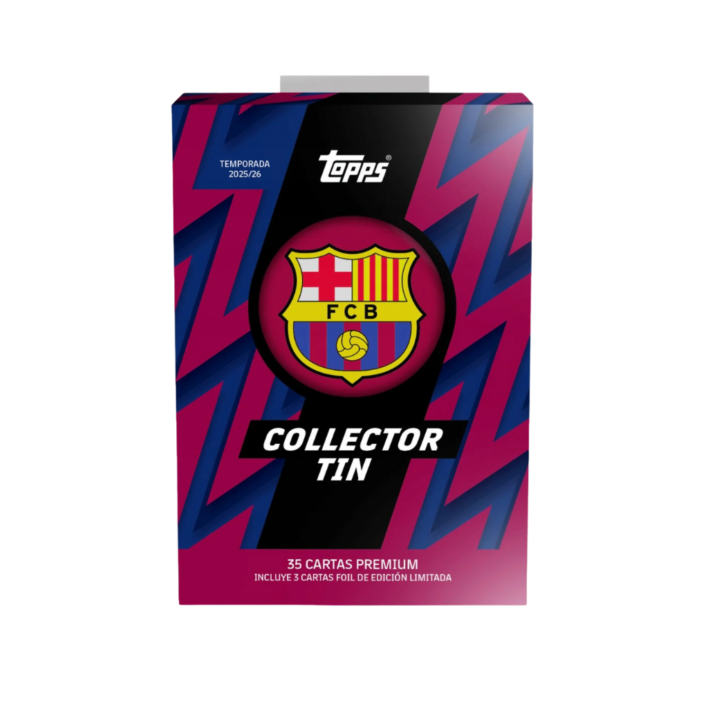 Topps – Soccer – 2025/26 FC Barcelona Collector Tin to kolekcjonerska puszka celebrująca Dumę Katalonii i jej bogatą historię piłkarską. Zestaw łączy aktualne gwiazdy pierwszej drużyny z legendami klubu, oferując przekrój kart, które idealnie oddają charakter i prestiż FC Barcelony.
